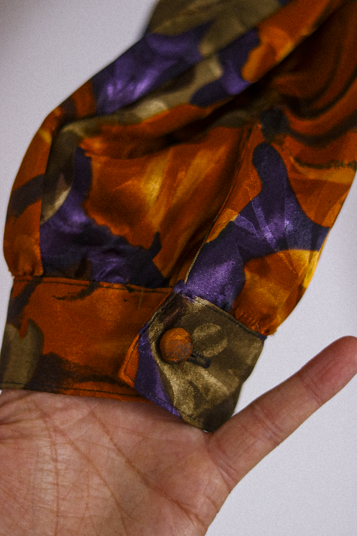 Cette chemise vintage transformera instantanément votre style. Imaginez-vous portant cette pièce unique lors d'un brunch entre amis ou d'une soirée créative - son col asymétrique attirera tous les regards et suscitera les compliments !