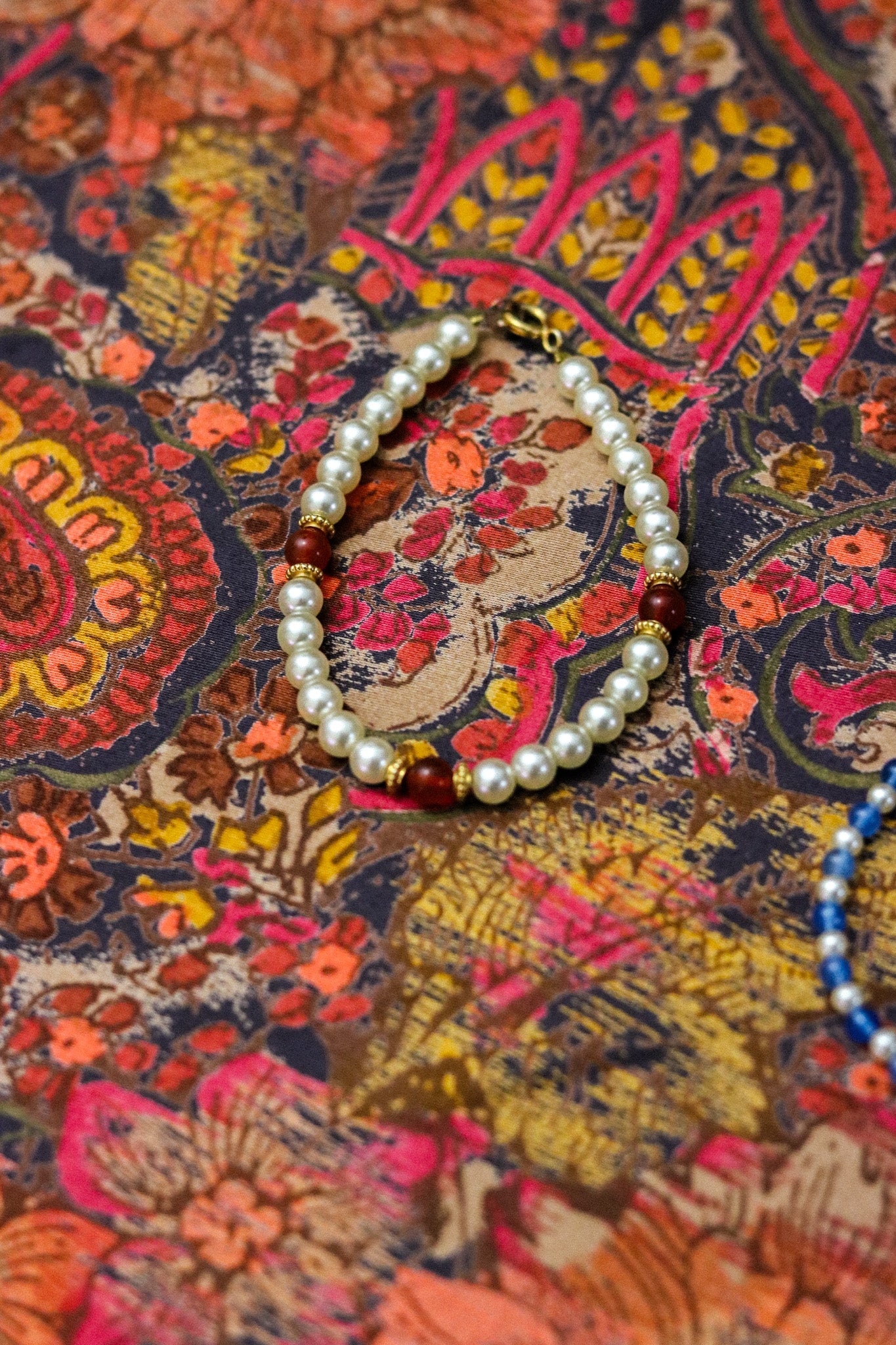 Adoptez un look bohème avec ce bracelet en cornaline et perles fantaisie.