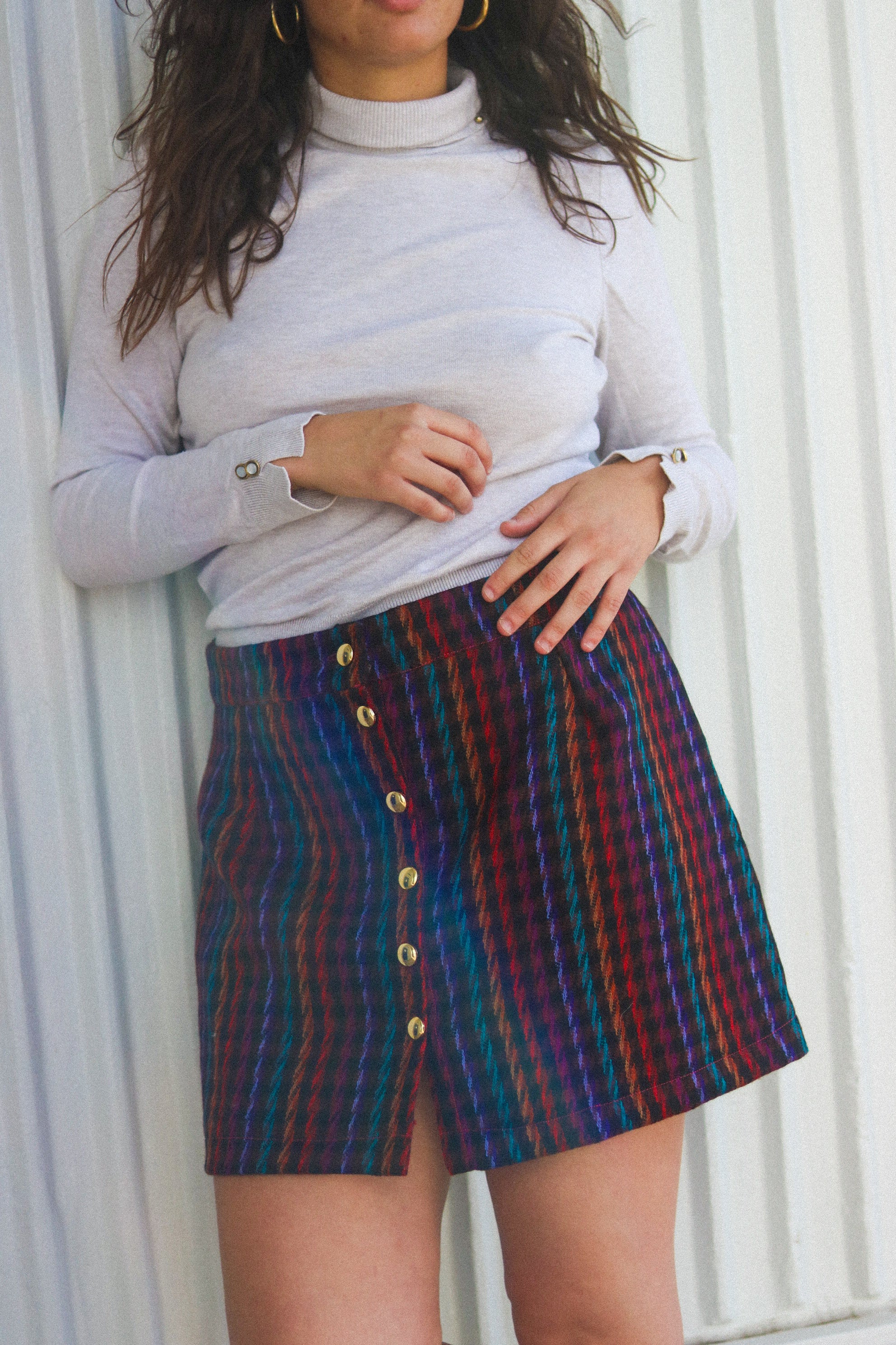 Une pièce unique cousue main à Rennes dans un magnifique tissu vintage en lainage vichy multicolore. Cette jupe droite allie élégance intemporelle et savoir-faire artisanal français.